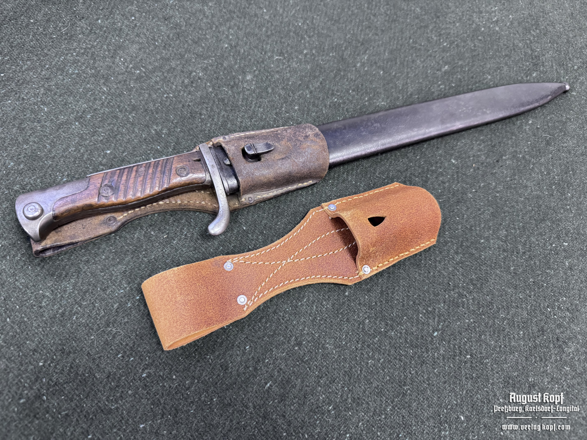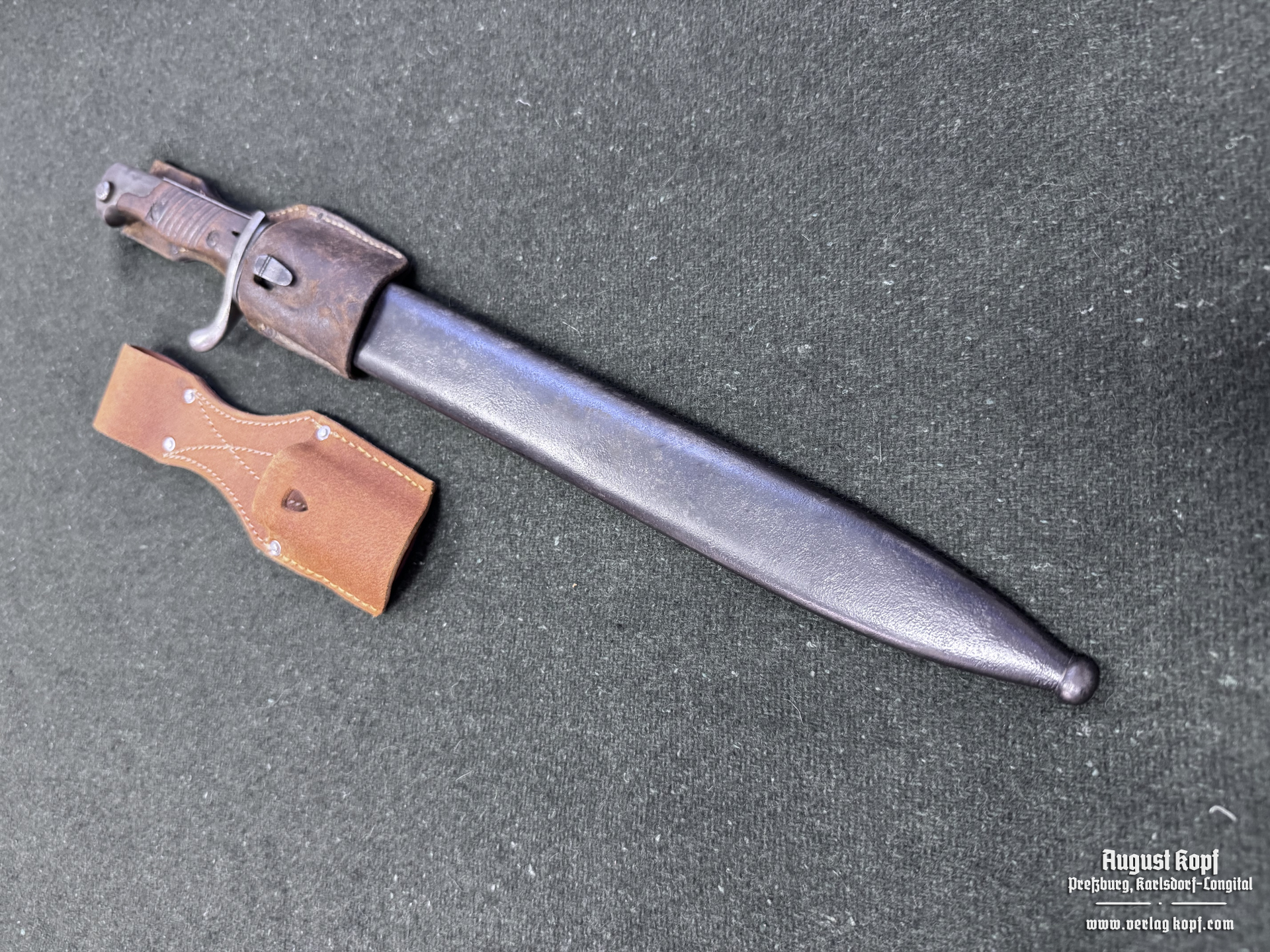 Nice leather pouch for WW1 bayonet in natural color. Great marking details. Great addition to your collection of original bayonets.